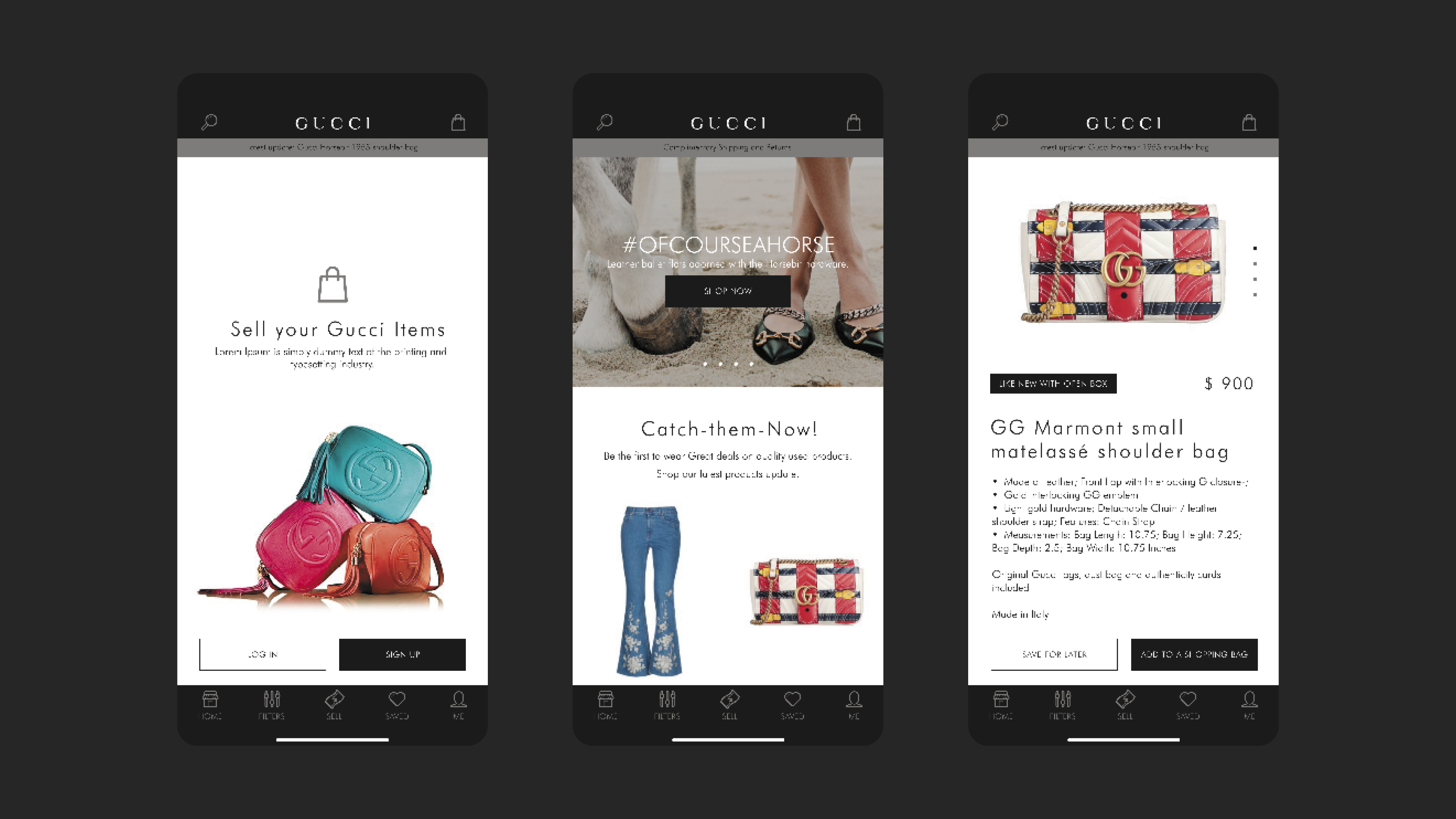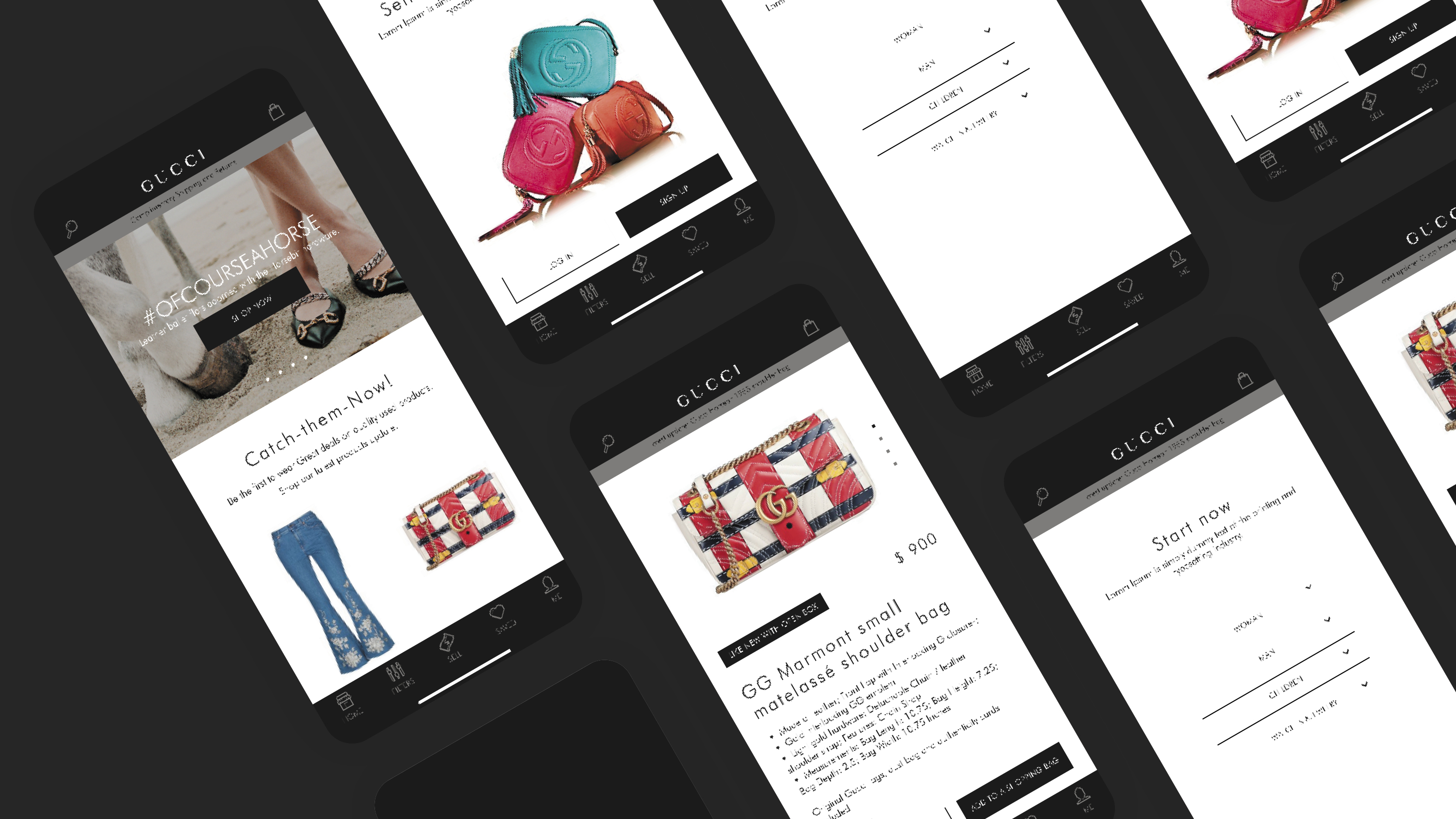 When designed this, I looked at many sites and they all looked quite massive. The main problem was to come up with an alternative idea of second-hand product, different from competitors and to tell about the unique expieriece when you are in #Guccifamily.